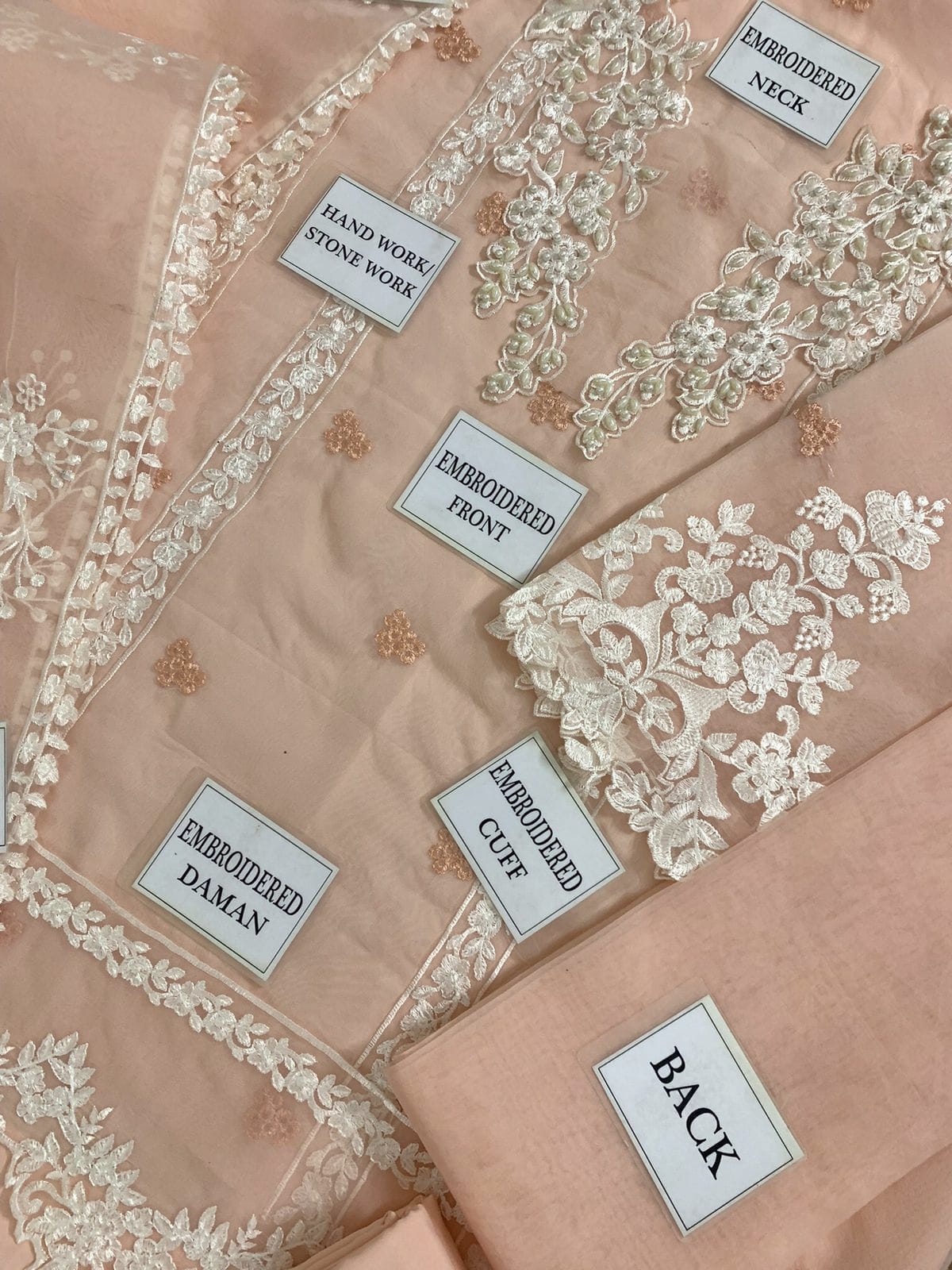 * neck: embroidered hand work embellished